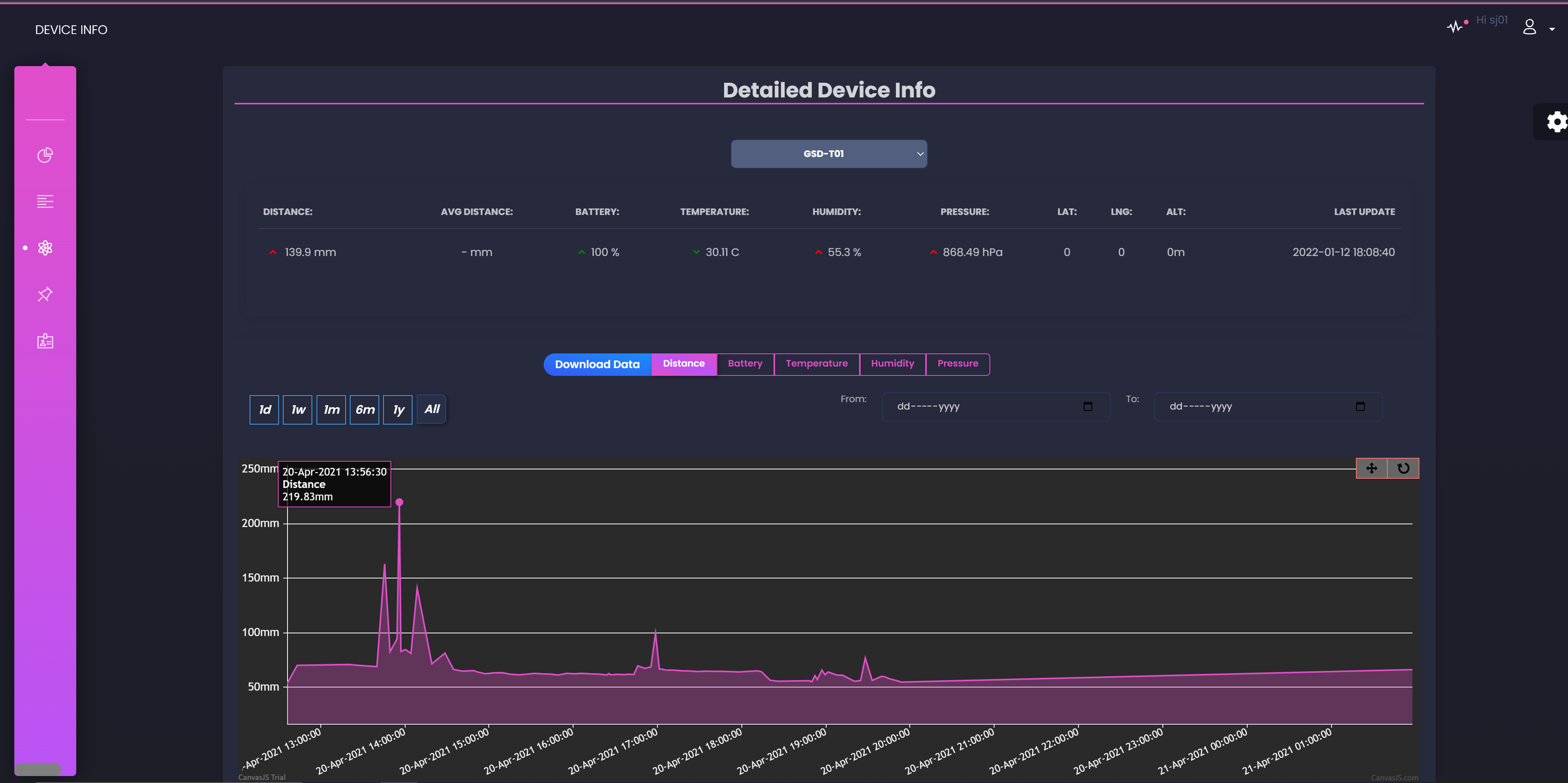 GSD can be set to periodically upload data to a secure database. Clients can securely access the data anytime from the user-friendly dashboard application.